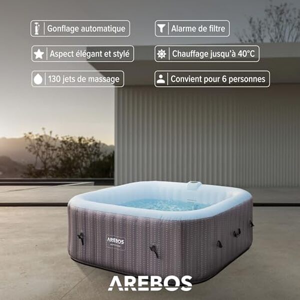 L’une des grandes forces de l’Arebos Spa Gonflable réside dans sa simplicité d’installation. Grâce à son système de gonflage automatique, il est prêt à l’emploi en un temps relativement court, selon les avis des utilisateurs. De plus, le produit est livré avec une bâche de protection et une autre de recouvrement, facilitant ainsi l’installation.